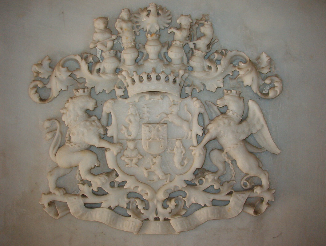 Címer Gróf Karátsonyi Etelka síremlékén a templom kriptájában