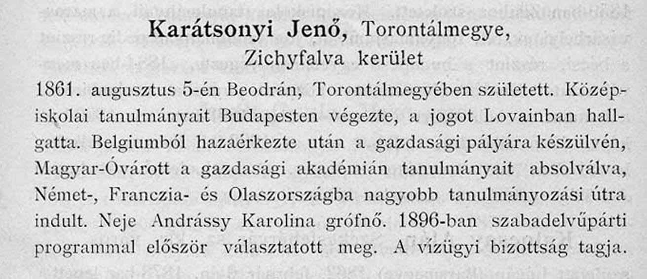A Wikipédia szócikke gróf Karátsonyi Jenőről